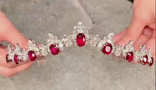 Magnificient Pigeon Blood No Heat Mozambique 3 cts each total of 27.90 cts Ruby necklace & crown combination by SR-Takat