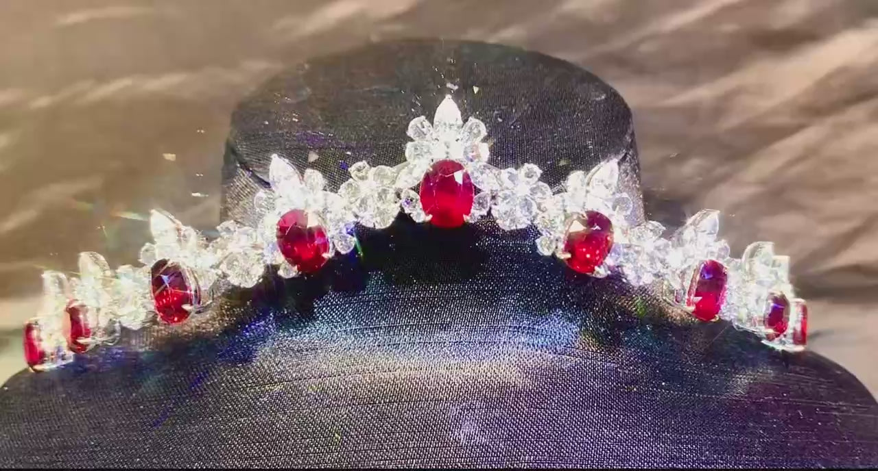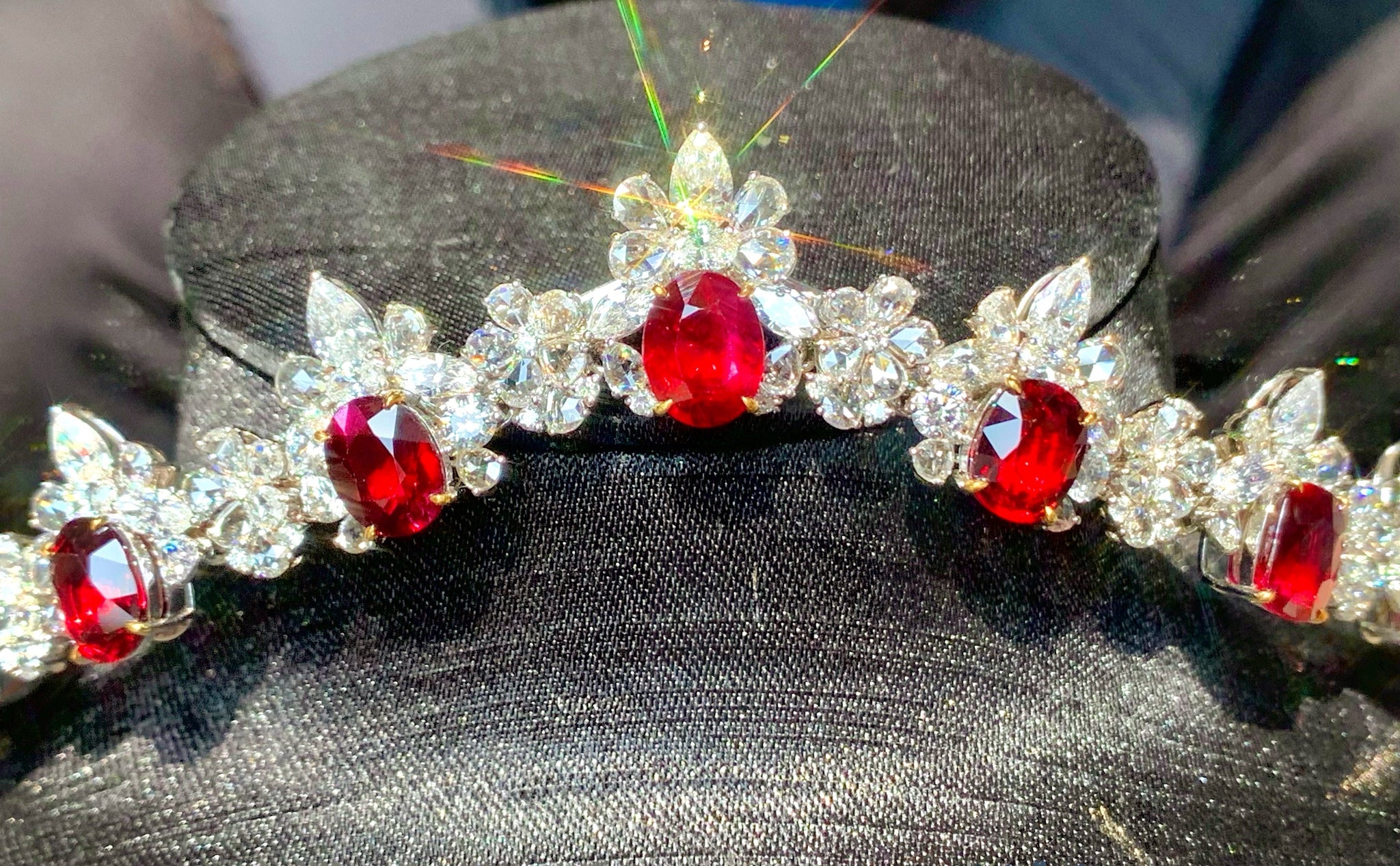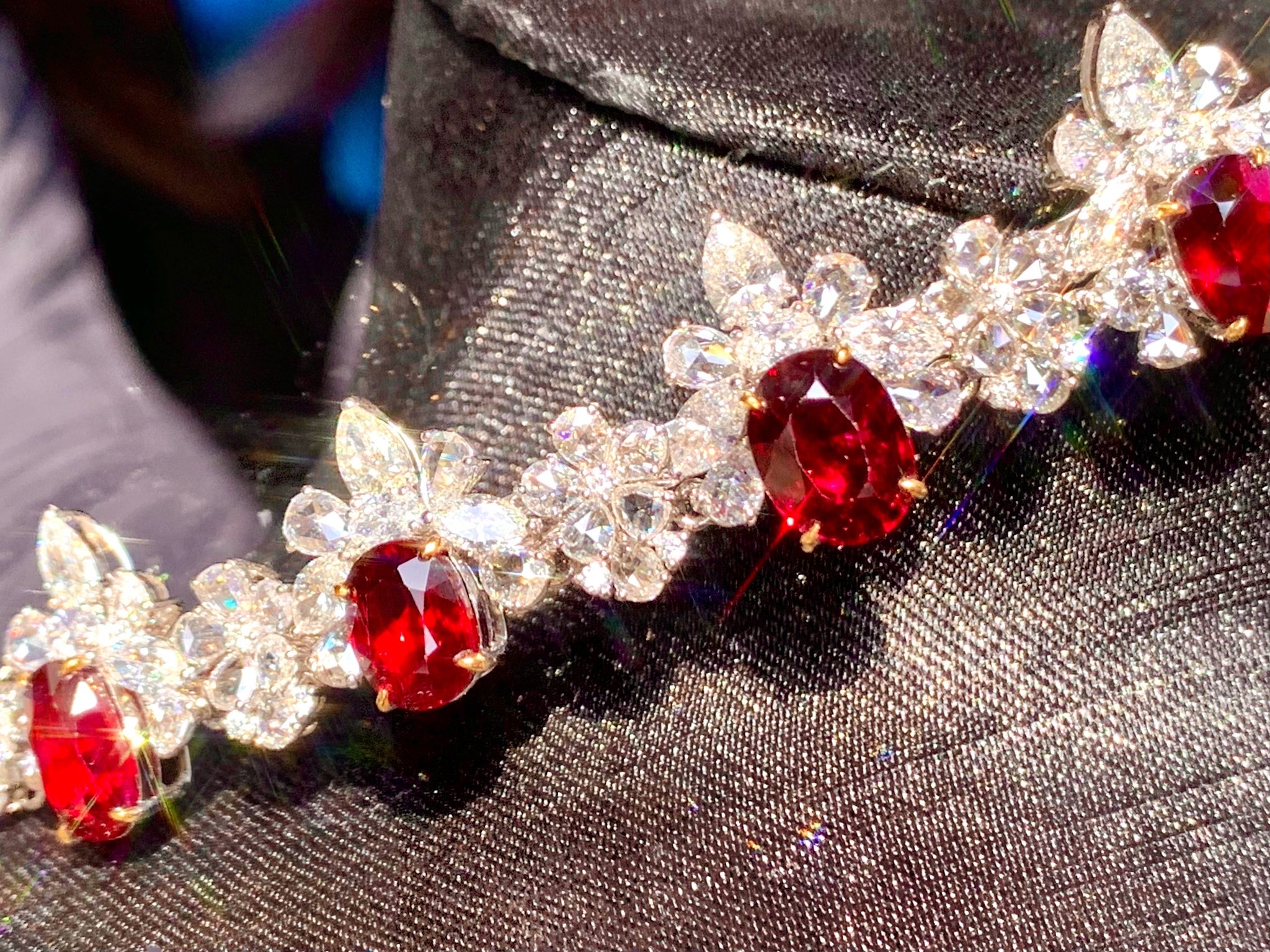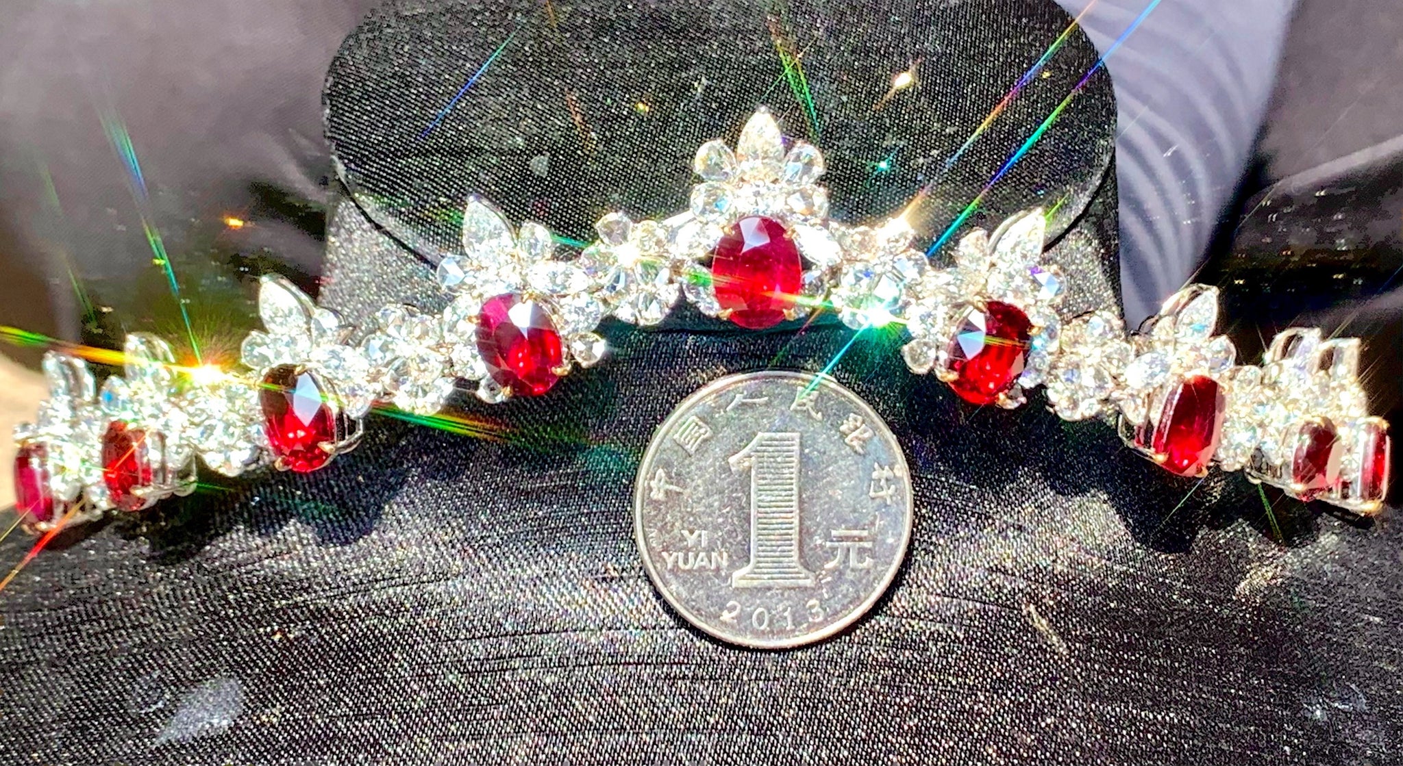 Exclusive original ruby crown necklace, dual-use! Each ruby is over 3 carats, made of unheated Mozambican pigeon blood! The rubies total 28.34 carats! Top-grade crystal glass! Almost completely clear! Full fire! Top-notch craftsmanship! Impeccable crack-free! Dazzling with diamonds! Set in luxurious platinum! With 19.73 carats of high-quality diamonds! Numerous large diamonds, a stunning fleur-de-lis design! Total weight 123.93 grams (including accessories)! Genuine materials, a heritage masterpiece! Each ruby is large! Stunning and elegant!