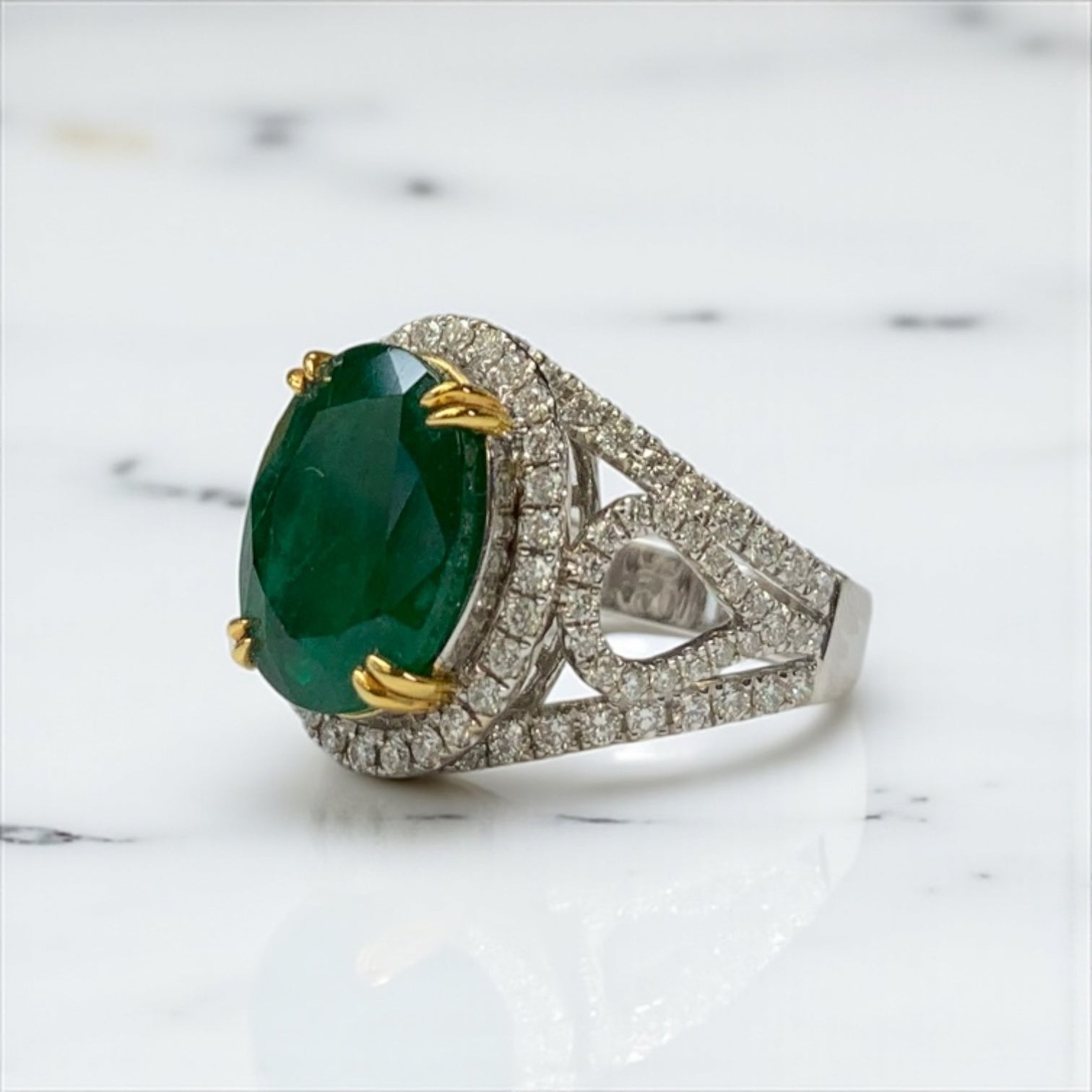 Beautiful Emerald Diamond 18k Platinum Ring by SR-Takat