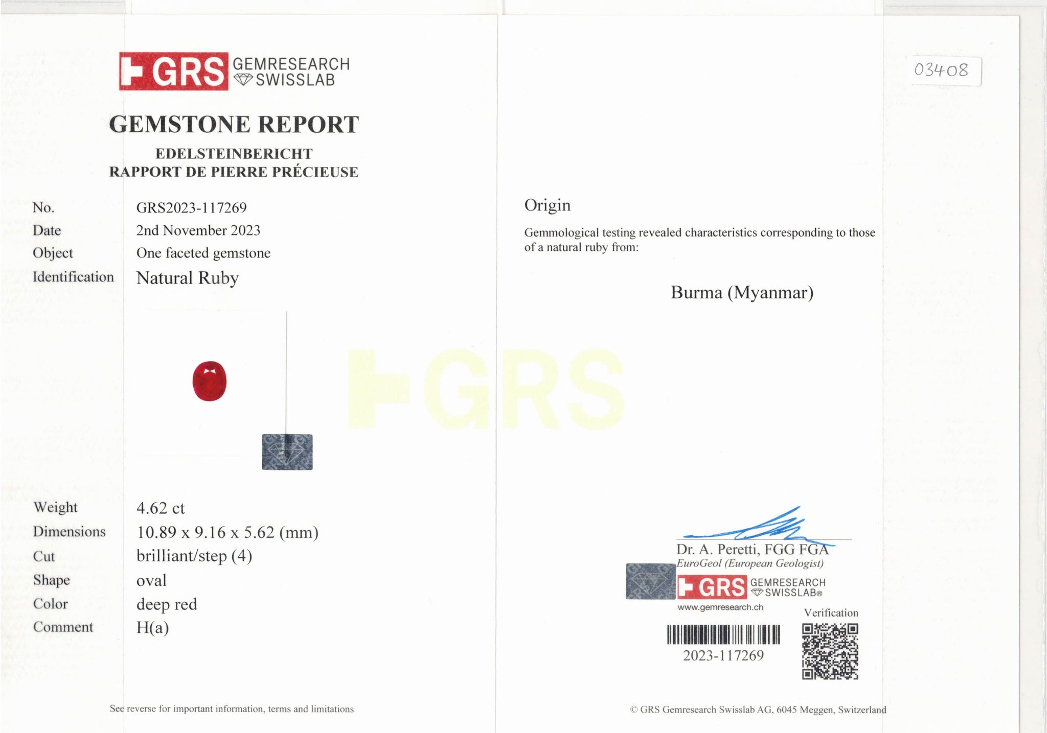 Natural Ruby Heated Burma 4.62 cts Oval by SR-Takat