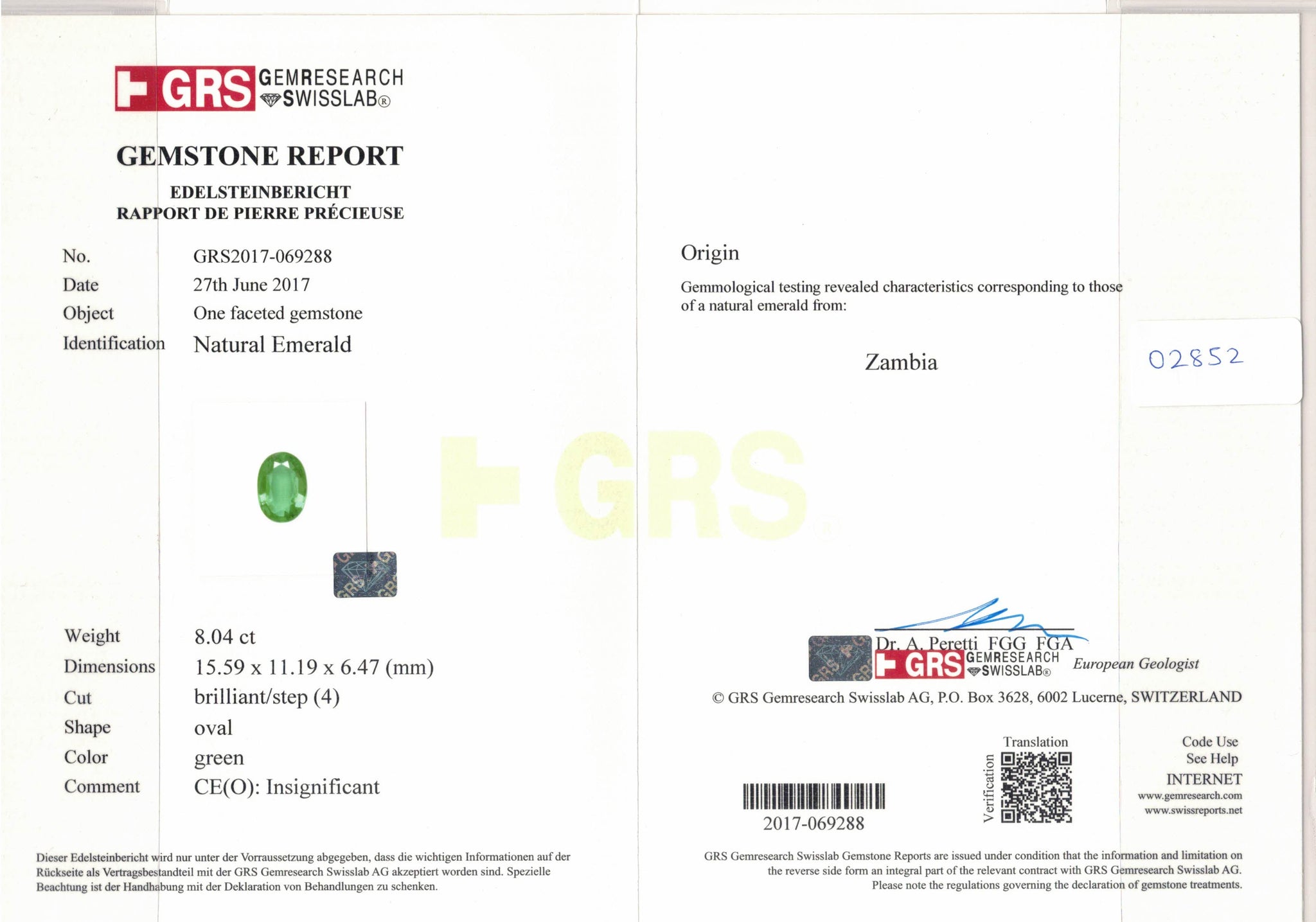 Natural Zambia Ins Emerald 8.04 cts Oval by SR-Takat