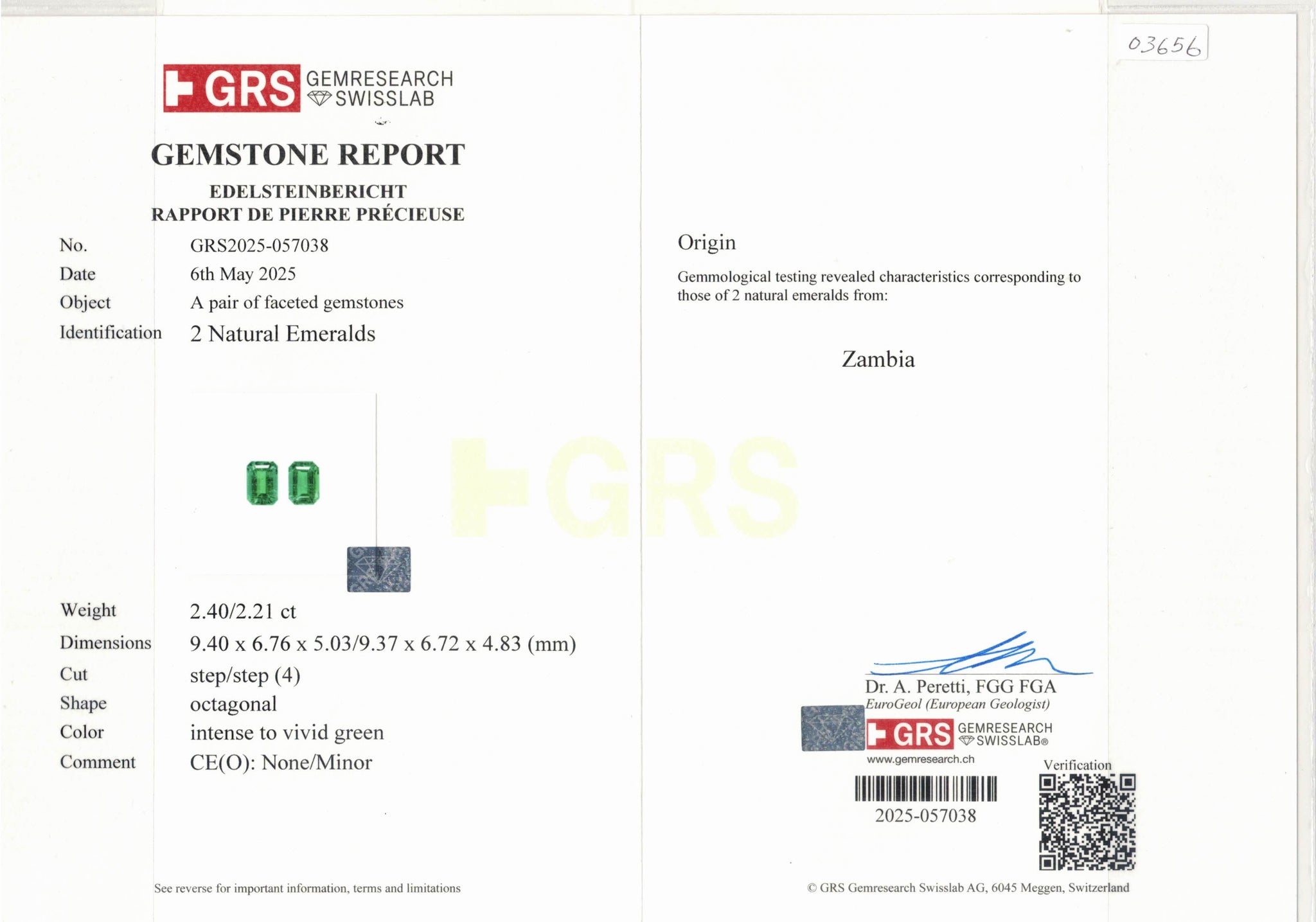 Natural Zambia Minor/No oil Emerald 4.61 cts Octagon pair by SR-Takat