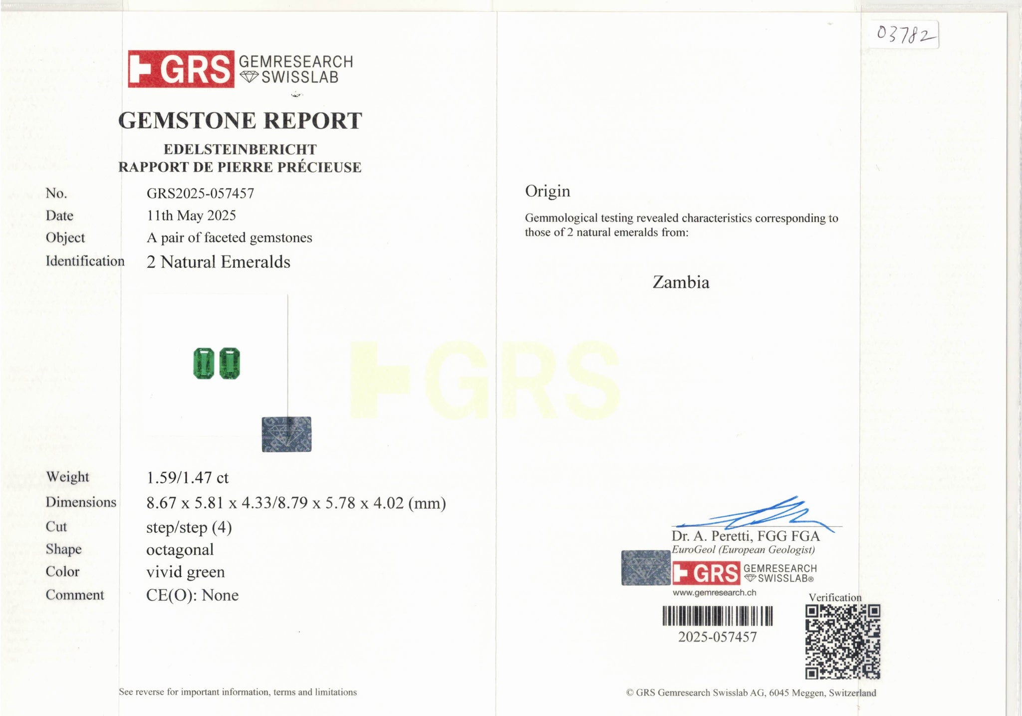 Natural Zambia No Oil Emerald 3.06 cts Octagon pair by SR-Takat