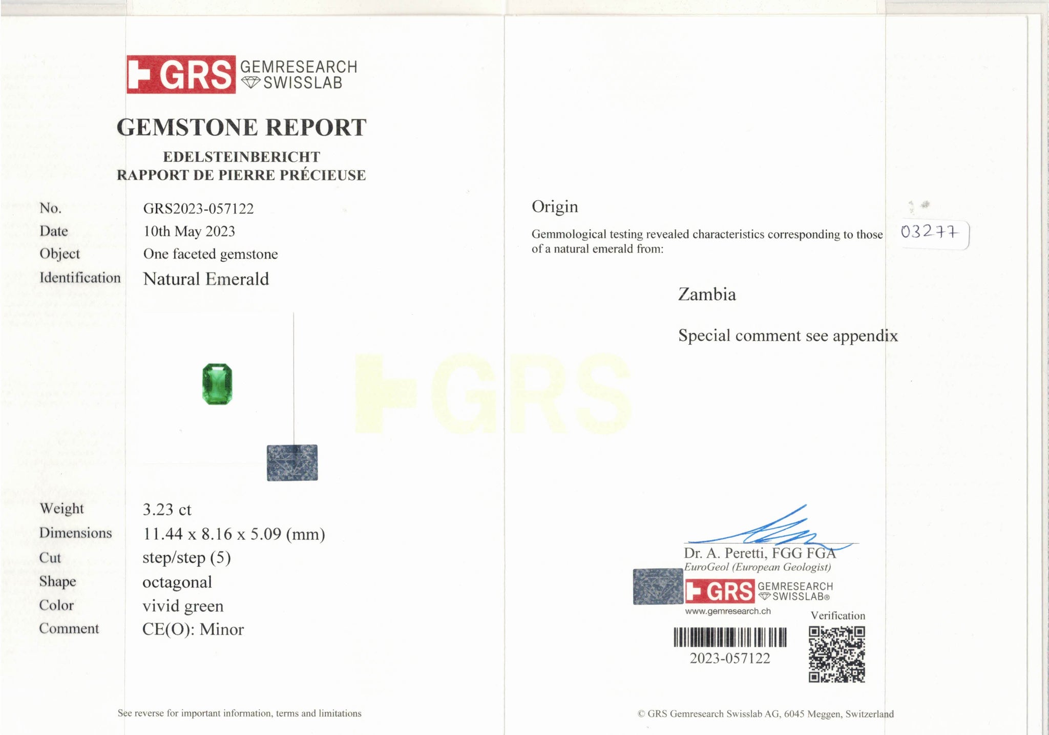 Natural Zambia No-Oil Emerald 3.22 cts Oct by SR-Takat