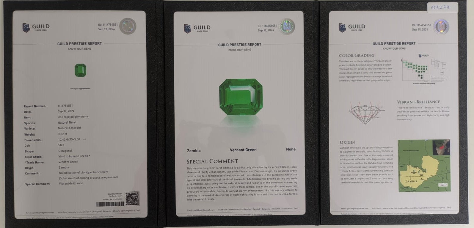 Natural Zambia No-Oil Emerald 3.32 cts Oct by SR-Takat