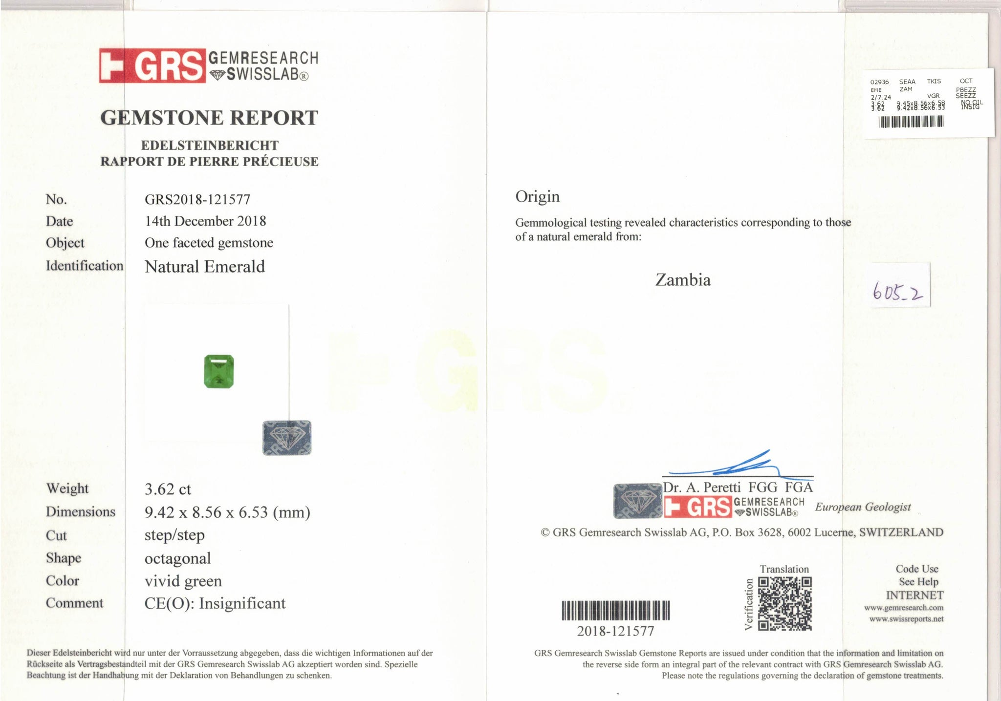 Natural Zambia No oil/Insig Emerald 7.24 cts Octagon pair by SR-Takat