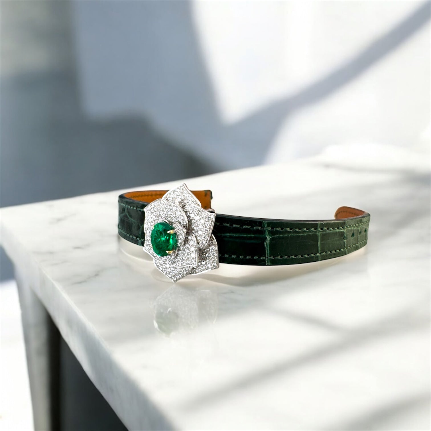 Magnificent Natural Emerald Diamond 18k Gold look-alike watch by SR-Takat